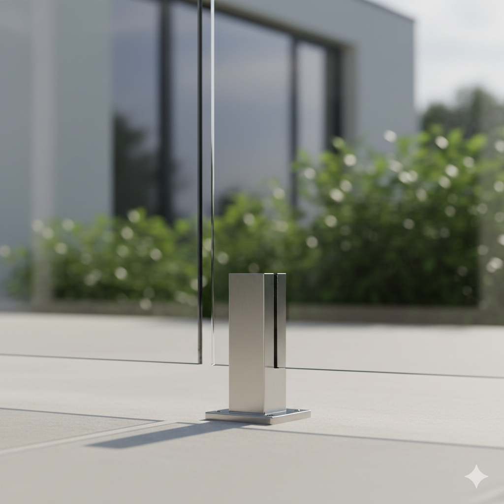 Magasított, 120 cm-es üvegkorlát oszlop, prémium kivitel, hosszú távú stabilitást biztosít, beltéri és kültéri használatra.